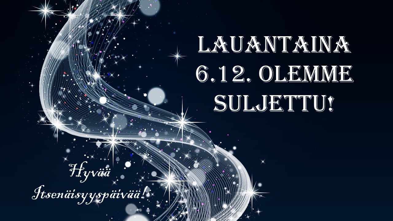 Juhlapyhinä suljettu.